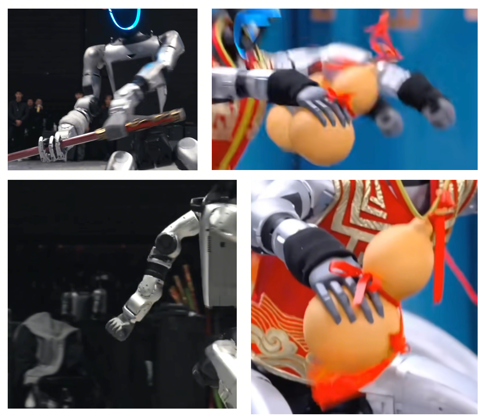 外网黑子说是遥控玩具,国内自媒体说能上战场,两边都离谱。2025年的动捕训练路线让舞蹈流畅度质变,查尔斯顿舞是关键节点。G1头顶加装禾赛激光雷达实现自主走位,群控技术类似无人机编队——工程扎实但跟AI无关。真正含金量最高的动作:倒着跑翻桌,惯量完全反物理,训练难度指数级上升。蹬墙空翻的跳板本身是一台"小型机器人",主动弹射、通讯联动、底座还会飘。灵巧手只在抓棍子时出场一次,抓握动作是写死的代码——左撇子打双截棍的真相是舞台调度的精妙安排。
