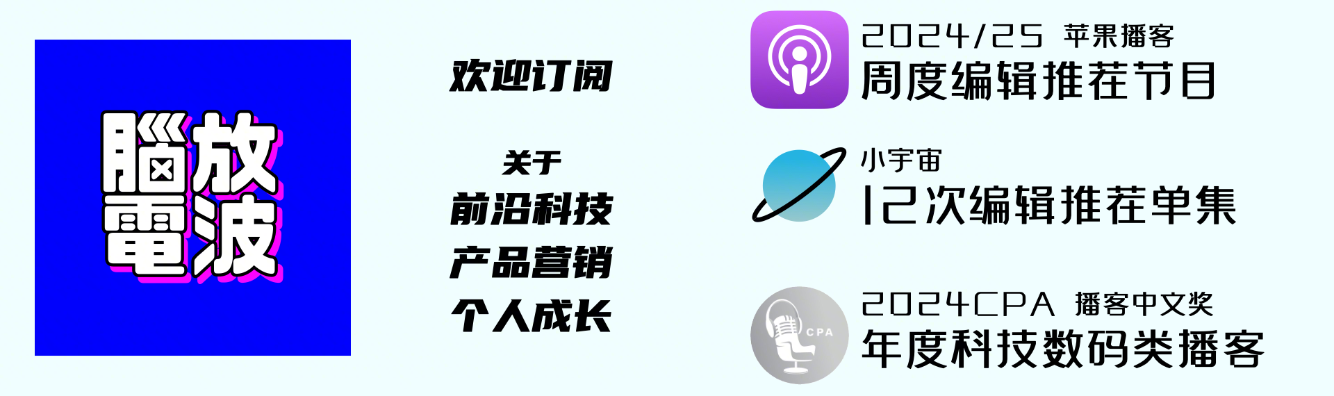 欢迎订阅脑放电波,2024/25苹果播客周度推荐节目、小宇宙累计12次编辑推荐单集、2024CPA播客中文奖年度科技数码类播客