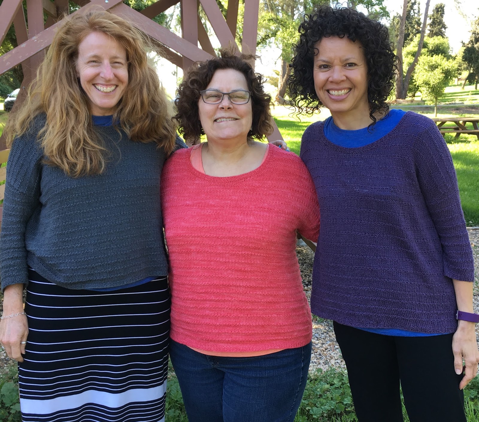 Top Down: Reimagining Set-in Sleeve Design is exciting to me because it takes the set-in sleeve sweater style, turns it upside down, and teaches us how and why we can knit sweaters in this direction, create fitted sleeves, and why we benefit from the exercise. I know Elizabeth personally and I will tell you that she is smart, thoughtful, and funny. This book takes Elizabeth's voice, combines it with the beautiful photography, yarns, and skilled knitting of Elizabeth's sample knitters (Hi Erin from Doubleknit!) and takes off running for the win. Lest you be afraid you won't understand the technical bits, the technique is supported by 6 classic patterns that are simple, yet elegant. I personally would love to get three of them on the needles. :) Needless to say, Gayle and I are both fans of this book, and hope you will be too. - Sharlene What are we wearing? Since we aren't wearing too many knitted garments this August, we talked about knitted items we have been using, including knit washcloths, and